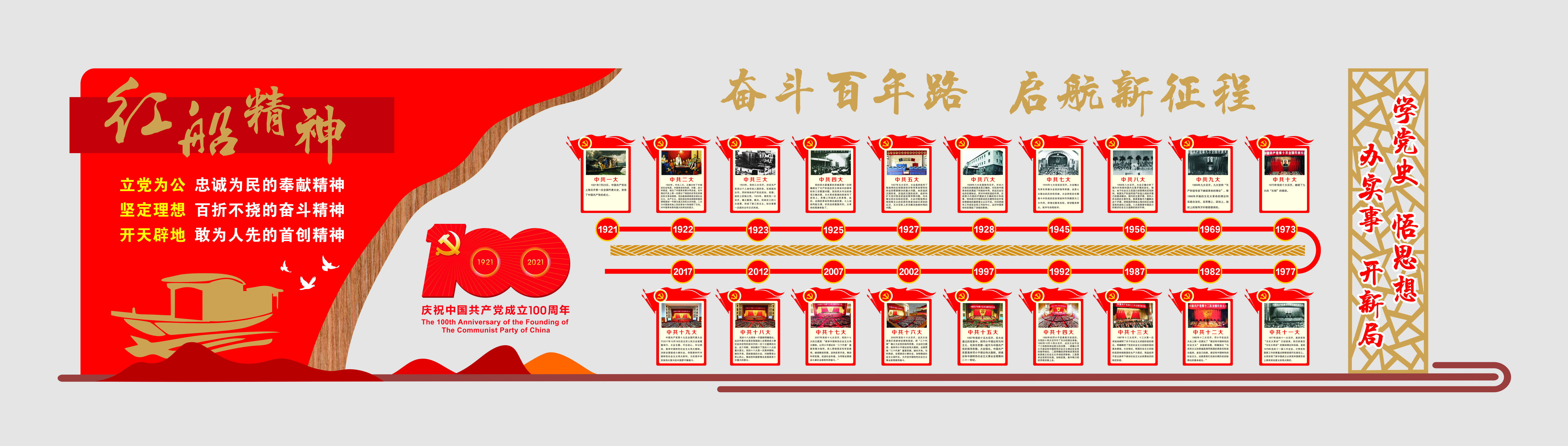 在建黨100周年之際,為深入學(xué)習(xí)貫徹習(xí)近平總書記在黨史學(xué)習(xí)教育動員大會上的重要講話精神,引導(dǎo)廣大黨員干部在回望歷史中感悟初心使命、在歷史縱深中明確坐標(biāo)方位、在鑒往知來中強(qiáng)化使命擔(dān)當(dāng)。近日,黃山建工集團(tuán)黨總支精心制作黨史教育展板,在辦公樓大廳內(nèi)營造濃厚學(xué)習(xí)氛圍。
