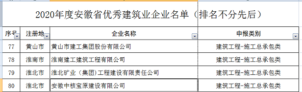 近日,安徽省住建廳傳來喜訊,2021年度安徽省優(yōu)秀建筑業(yè)企業(yè)評選結果已出爐,黃山市建工集團榮獲2020年度安徽省優(yōu)秀建筑業(yè)企業(yè)---建筑工程施工總承包類優(yōu)秀建筑業(yè)企業(yè)。