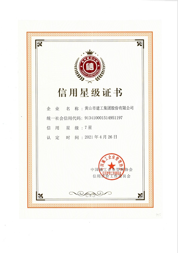 黃山建工集團(tuán)再次榮獲全國(guó)工程建設(shè)AAA級(jí)信用等榮譽(yù)稱(chēng)號(hào)