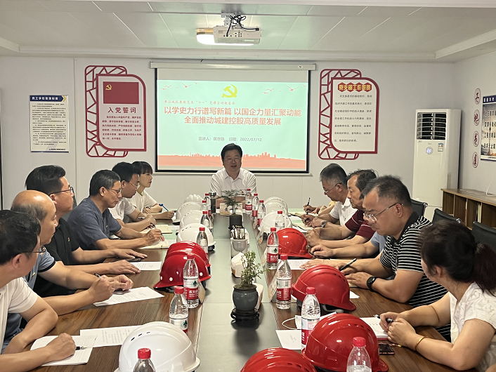2022年7月12日上午,黃山城投集團黨委副書記、董事、總裁黃世穩(wěn)同志冒著酷暑來到黃山建工集團共建合作單位文瀾軒“工地黨?!睘槲覀冎v授專題黨課,參加黨課的有城投集團工程部總監(jiān)汪潤蘭同志、黨群工作室副主任王蘊寒同志,城建控股、建工集團總支班子成員、黨員代表40余人。