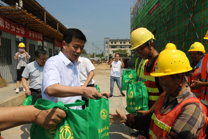在項目施工現(xiàn)場,區(qū)委書記吳旭光代表區(qū)委區(qū)政府向在高溫下作出辛勤工作的工人們表示深深的敬意,將防暑降溫物品送到他們手中,并叮囑他們要勞逸結(jié)合,注意身體健康。并要求項目部要科學(xué)安排作息時間,制定高溫應(yīng)急預(yù)案,加強施工現(xiàn)場安全管理,確保高溫時期工地安全生產(chǎn)形勢穩(wěn)定。
