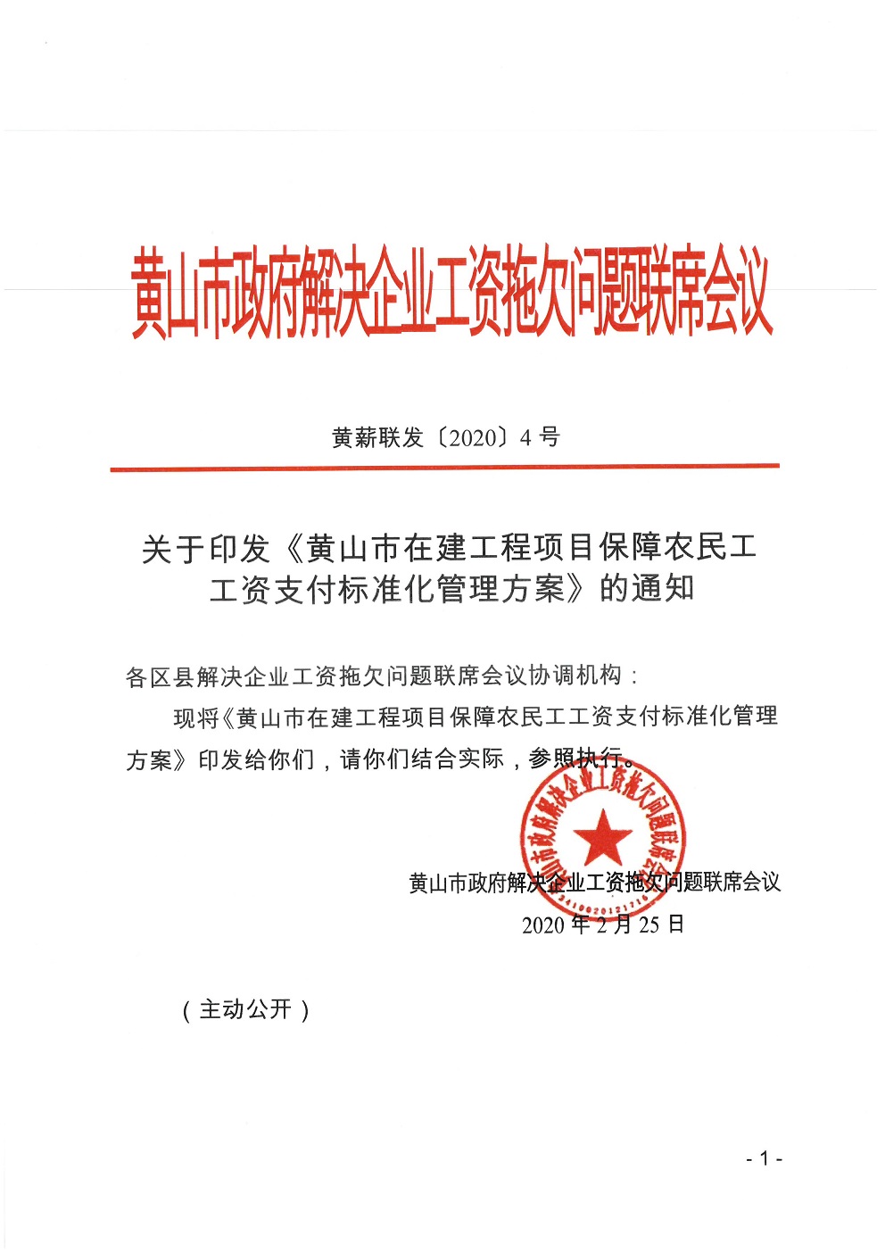 關于印發(fā)《黃山市在建工程項目保障農(nóng)民工工資支付標準化管理方案》的通知.doc